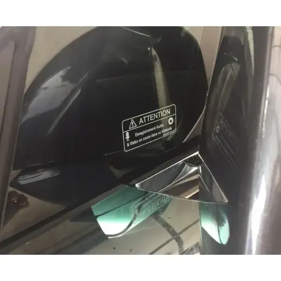 Affichez cette étiquette de notification bien en vue pour informer vos passagers et d’autres personnes (telles que les forces de l’ordre) qui se trouvent à l’intérieur ou autour de votre véhicule que votre dashcam enregistre des données audio et vidéo.