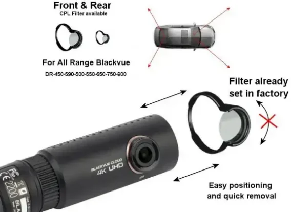 -Un support pour filtre polarizé compatible BlackVue DR590X